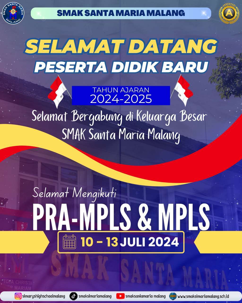 Details“MPLS itu seperti petualangan baru, penuh dengan rintangan dan kejutan, tapi juga penuh dengan keseruan dan persahabatan. MPLS bukan tentang senioritas, tapi tentang kebersamaan dan menciptakan kenangan indah bersama.” Selamat Datang Peserta Didik Baru Tahun Ajaran 2024-2025. Selamat bergabung di Keluarga Besar SMAK Santa Maria Malang. Kobarkan semangatmu untuk mengikuti kegiatan Pra-MPLS dan MPLS mulai…